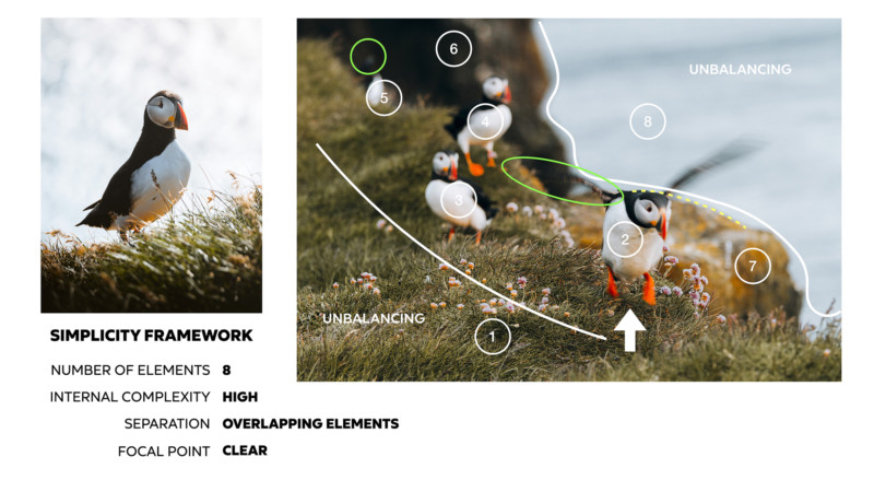 Looking at the above photo, we can see five elements, a high level of internal complexity, good separation, and a clear focal point.