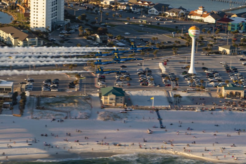 The flyover locations included Orange Beach, Gulf Shores, Fort Morgan, Ferry Pass, Navarre Beach, Pensacola Beach, Perdido Key, Community Maritime Park, and Palafox Street in downtown Pensacola.