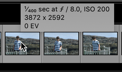 If I want or need to swap that info for what is configured in Info 2 I can press the I key (I for Info), then move my cursor off the photo, and then move it back again to see the Info 2 configuration displayed.