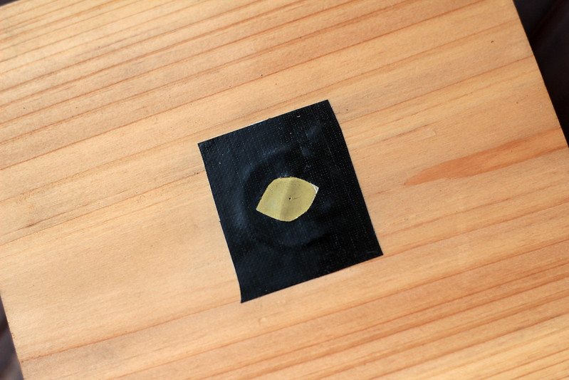 Pinhole is about 0.3mm on a thin brass foil. A hole is drill on the wood and the pinhole pasted over it using .....tape