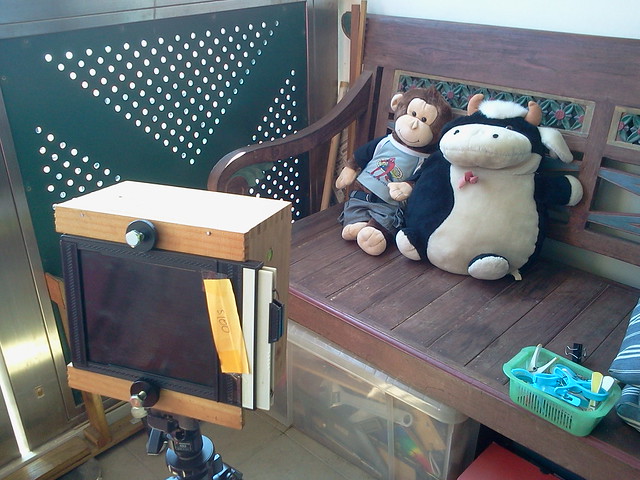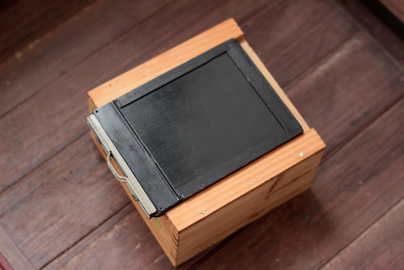 Here is a 4x5 pinhole cam made cheaply from a wooden rice measuring box from Daiso
