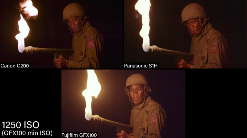 “The GFX is doing terribly the 3200,” he says. “It is honestly not what I expected. I thought it’d be much cleaner at this point. But the photo capabilities don’t always translate to the video capabilities, especially for these hybrid bodies. It is fascinating, because we have tested the GFX 100 with regards to stills and ISO and it performed extremely well. But if we’re not seeing it in this video format at all. I would not want to shoot this above its native ISO.”
