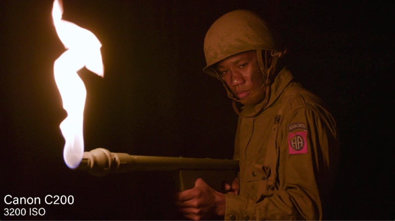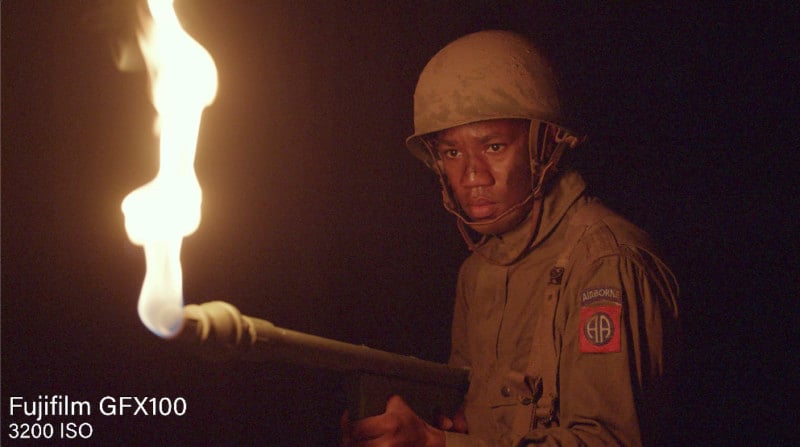 “We just wanted to start as low as we could and that’s 1250 for the GFX,” Morgan says. “So we went 1250 across the board. So the light we have on his face is pulsating. The flame is kind of flickering. And so what you see in the black deep shadows is that kind of pulse from the flame. It’s not some kind of issue with the ISO.”