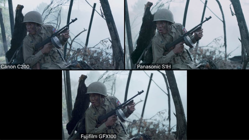 These three cameras were chosen because the C200 has a super-35 sized sensor, the S1H has a full-frame sensor, and the GFX is, of course, medium format.
