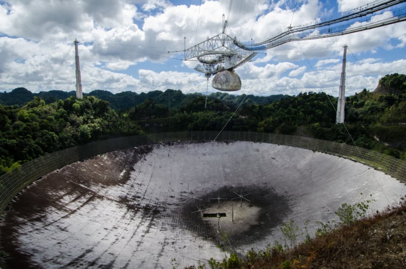 The Arecibo Observatory in Puerto Rico was built in 1963 and was the world’s largest single-unit radio telescope until China’s construction of the FAST in 2016. After struggling with structural issues for some time, the dish finally collapsed and the violent destruction was caught on video.