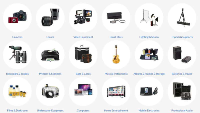 A selection of the product categories in Adorama’s pre-owned marketplace.