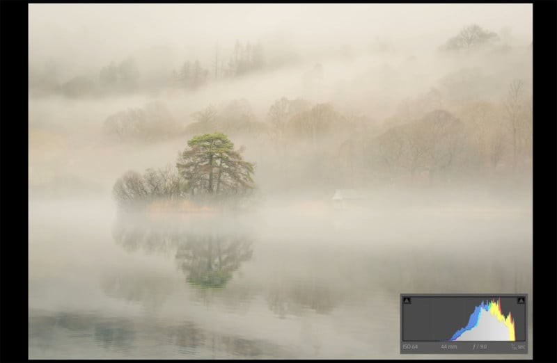 5. Black isn’t always black. The next time you go out, look around and notice that sometimes the darkest tones in the scene aren’t black (the obvious example is fog). So don’t edit them to be black and understand that the histogram can have gaps at the LHS.