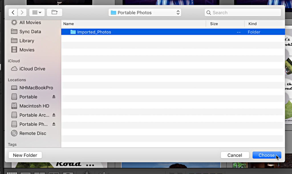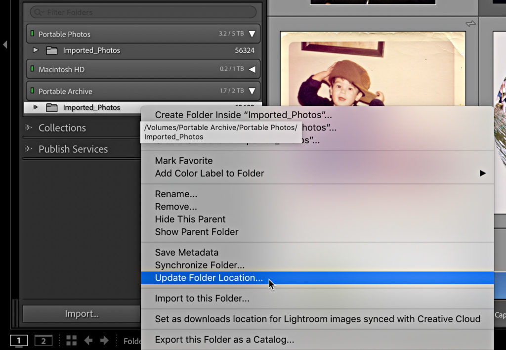 Now, if you only have a single drive to replace, you are done. Go off and celebrate your successful operation. If you’re like me and have a second drive, then we need to repeat that process with the other drive. So, I right-clicked the Imported_Photos folder of the second drive, and selected Update Folder Location.