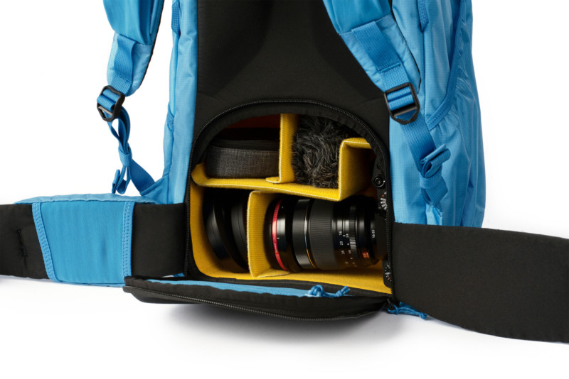 Moment and Strohl also designed two modular inserts: the Strohl Mountain Light Camera Loader — which is waterproof and has low profile padding — and the Strohl Mountain Light Camera Insert that supposedly keeps the equipment organized in the bag. The padded dividers can be changed around or removed if not needed.