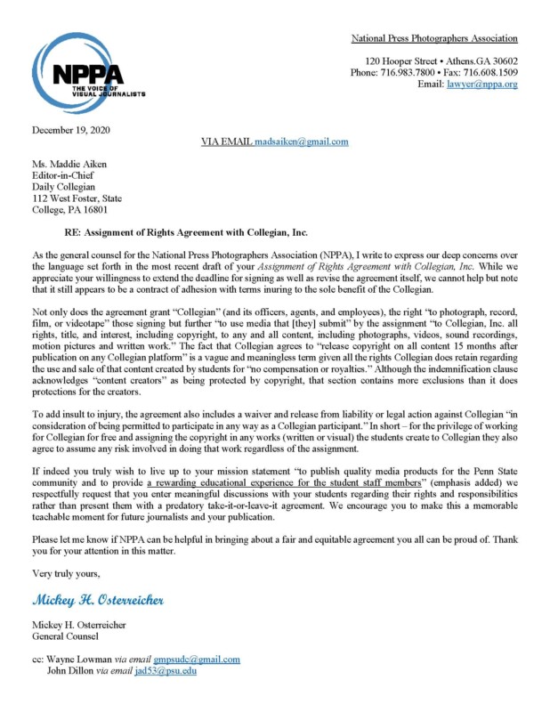 Osterreicher also sent a separate letter to the Editor-in-Chief outlining the organization’s “deep concern” for the language in the contract.