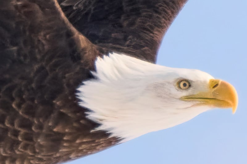 These first two examples are going to be from feeding already completely edited images into them, and the rest will be based on the original RAW file. For this photo, I had shot it with the Sony A1 and cropped it in for the edited version. While having 26 megapixels as an end result is quite good, I may have wanted to crop into the eagle much tighter for a more intimate final look.