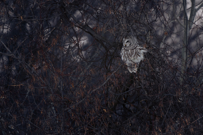When I posted the edited image of this to Instagram, it was the same story of 1,080 pixels wide with a 100 percent crop. With the branch poking into the body, I wanted to remove that from the frame and choose a tight crop on the head in order to salvage something out of this dark, dramatic scene.
