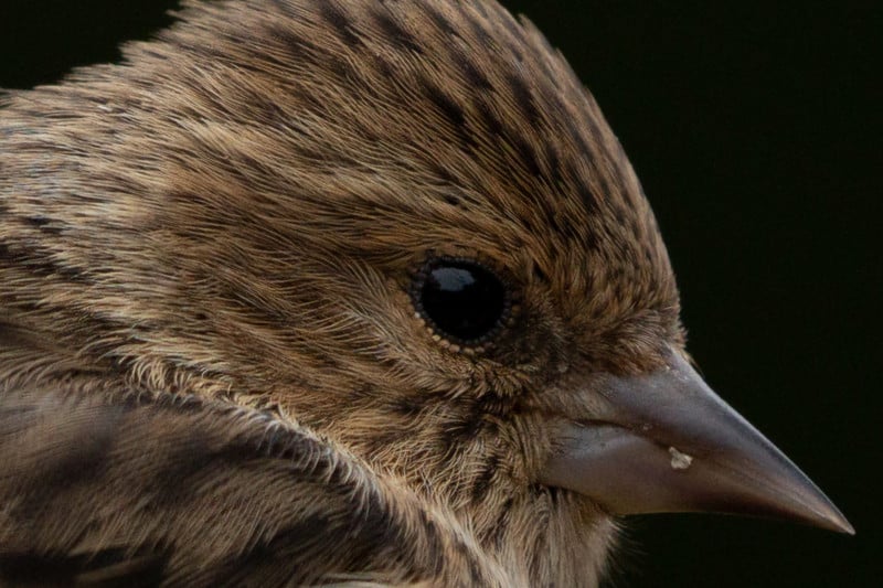When I posted the edited image of this to Instagram, it was the same story of 1,080 pixels wide with a 100 percent crop. With the branch poking into the body, I wanted to remove that from the frame and choose a tight crop on the head in order to salvage something out of this dark, dramatic scene.