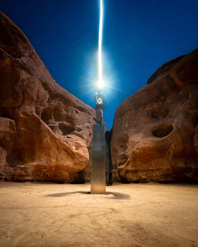 On Friday, Nov 27, Bernards decides to pay the Utah Monolith, a 6-hour drive away, a visit. “I went out there to practice light painting with my drone. I was just trying to learn how to do it, what settings I should use, and really didn’t think much of it at the time I clicked the shutter,” Bernards tells PetaPixel.