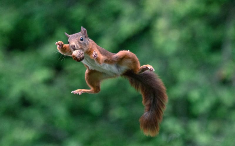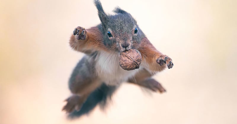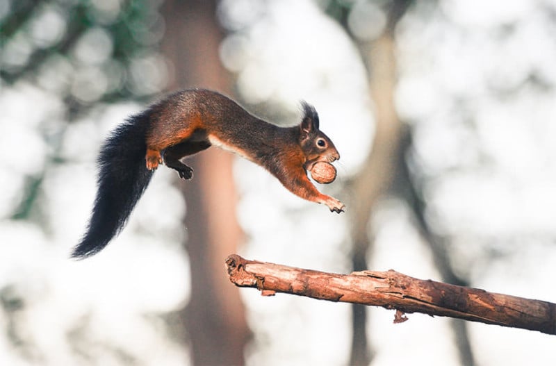 “I wanted to see how I could capture a squirrel in the most difficult and intense way,” Colemont says. “I wanted to see their expression when they jump.”
