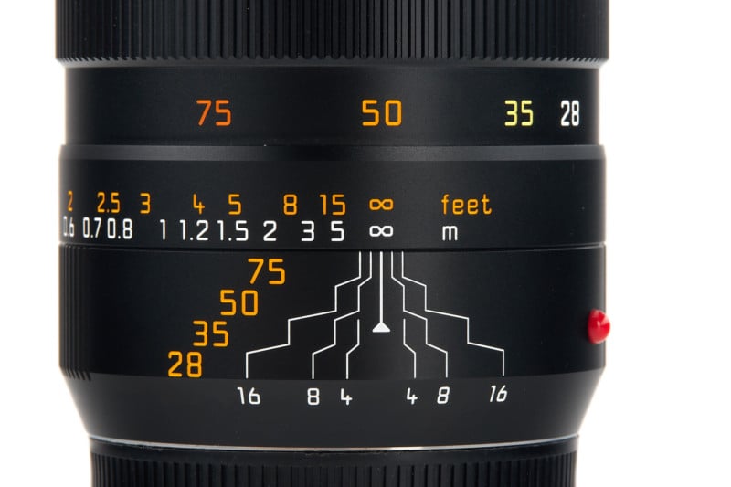 The lens is one of only three existing Vario-Elmar-M lenses and was designed in Germany in 2012. The lens was originally conceived as a universal lens to replace the Tri-Elmar 28-35-50. Different from the Tri-Elmar, the Vario-Elmar-M has a “true zoom” construction that produces a sharp image between the four hard stops.
