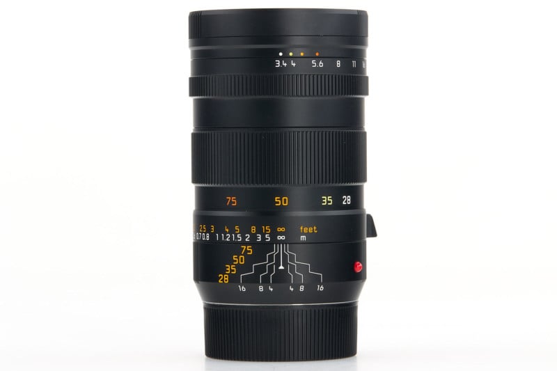“The production of the final-stage prototypes had been outsourced to Japan, but because of the complexity of the mechanical and optical design, the project was canceled in 2015,” the lens listing reads. “Only three lenses have been finished and met the quality standards set by Leica engineers. The lens bears the Leica order number 11669 and comes with a special screw-type prototype hood 12469.”