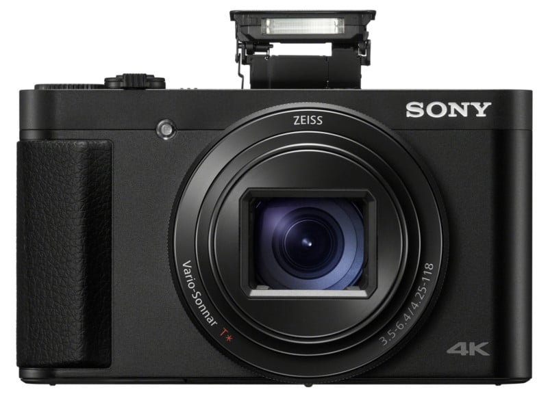 On the front of the cameras is a Zeiss Vario-Sonnar T* 24-720mm (35mm equiv.) 30x zoom lens that’s image stabilized with Optical SteadyShot technology. Zoom Assist allows photographers to zoom out temporarily to view a wider scene while shooting on the telephoto end.