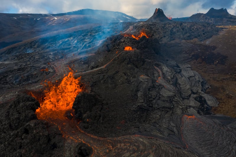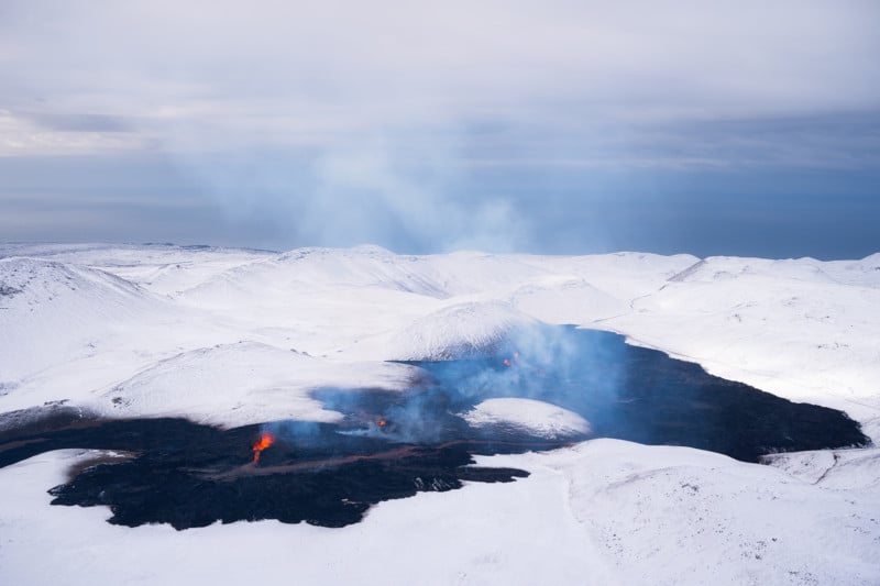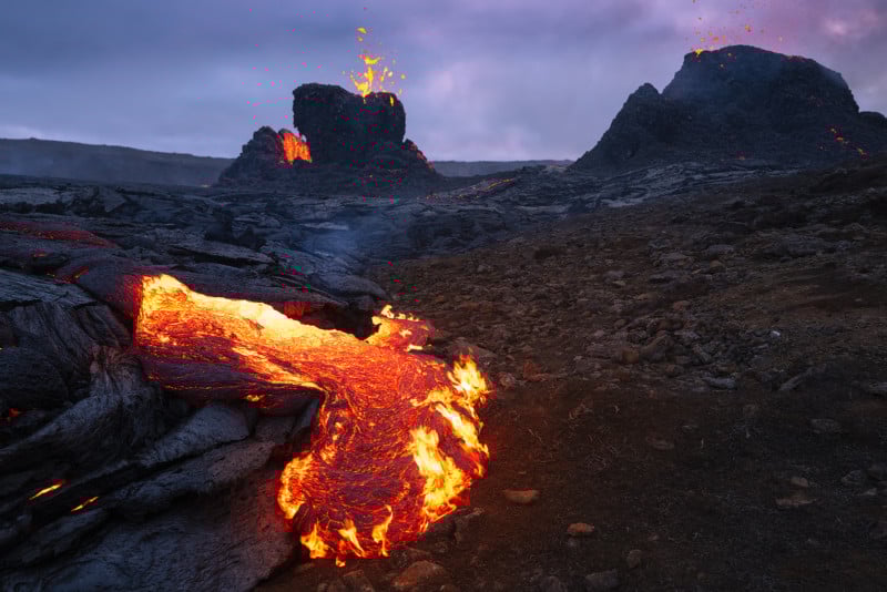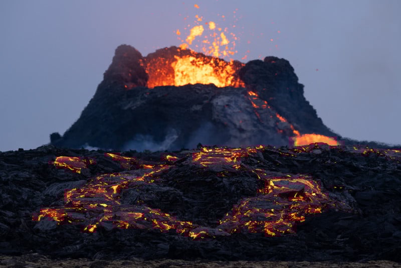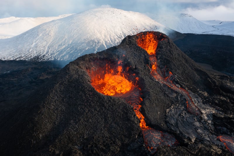 “With the glow of the eruption being visible from the capital of Iceland, Reykjavik, thousands of visitors have been able to visit the site and take in the beauty of the event,” Mezeul tells PetaPixel.
