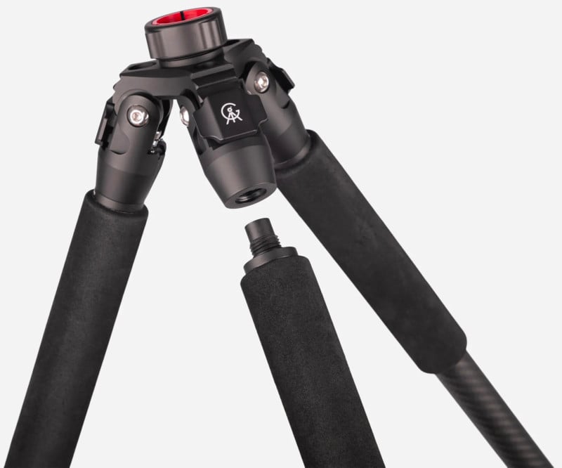 The Gearing Tripod kit includes a set of short legs and long legs that can easily swap on and off the “heart” unit. The heart also has four pitch positions for different heights and levels of stability.