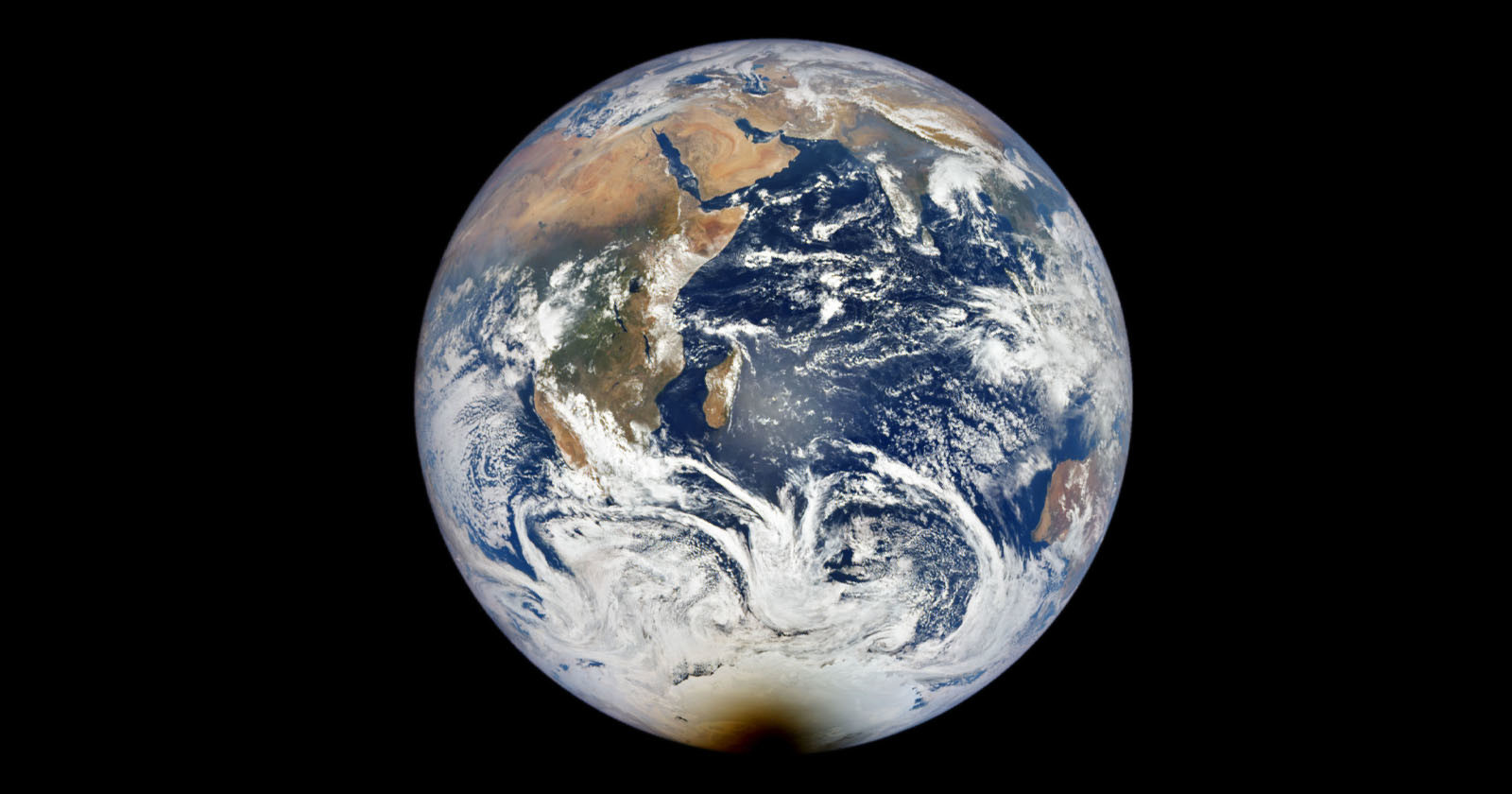 On December 4, 2021, a total solar eclipse occurred over the skies of Antarctica. It was the only place on Earth where it was visible, and this photo from space shows the huge shadow the event cast over the southernmost continent.