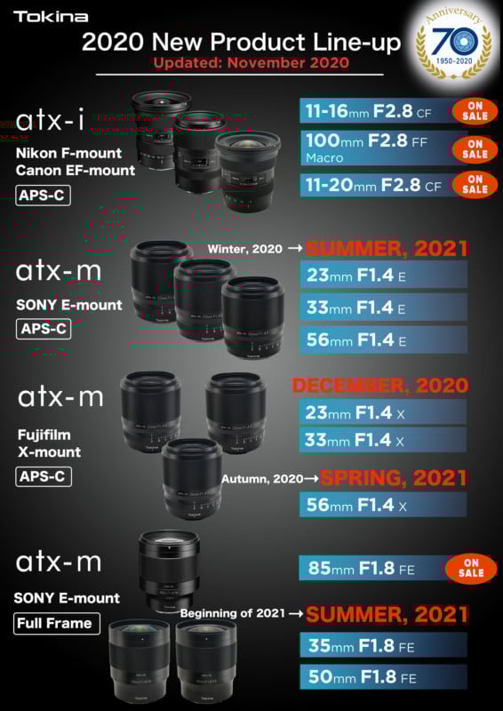 In addition to announcing these two lenses, Tokina published the following updated roadmap for 2021: