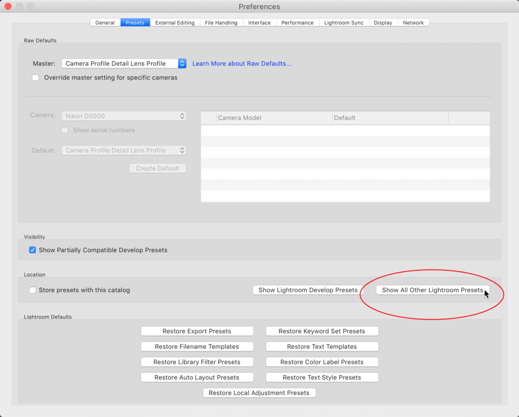 I suppose it is also worth noting that if you feel possessed to do a bit of clearing out of old unused templates, you can find the folder where these types of things live by jumping over to the Presets tab of the Preferences, and then click the Show All Other Lightroom Presets button to open your file browser to the Lightroom folder that contains them.
