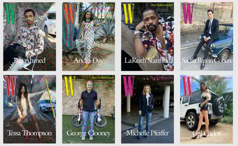 W Magazine‘s latest annual Best Performances issue features portraits of Riz Ahmed, Jacob Elordi, LaKeith Stanfield, Jonathan Majors, Steven Yeun, Michelle Pfeiffer, Sacha Baron Cohen, Tessa Thompson, and more. The celebrities are seen posing in various mundane locations on a nondescript sidewalk.