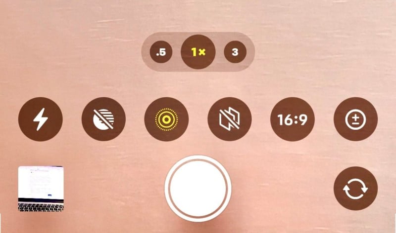 This should be obvious to anyone who’s ever used a smartphone camera before, but the big white button is the shutter and the circle is for switching to the selfie camera.