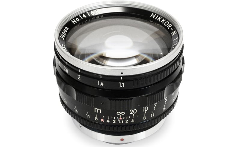 With its rangefinder line, Nikon also pushed the boundaries of optical design — most notably a gigantic 1000mm f/6.3, and of course the 50mm f/1.1 discussed here. The 50mm f/1.1 became the fastest commercial lens ever released when Nikon unveiled it. Naturally, it was enormous.