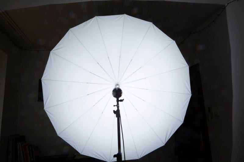 Any other umbrella where the light is shining indirectly will work in a different way: light will first hit the bottom of the umbrella, and then be reflected/bounced around while modifier filling it. If a diffuser has been added, that light will bounce a few more times and exit in a very even, orderly fashion.