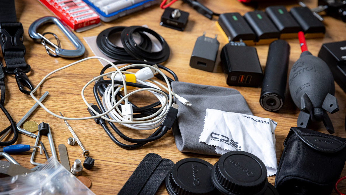 A camera bag can carry a lot of stuff. It fits a camera and lenses, but also other things that may or may not be helpful for your photography. Sometimes, there’s too much stuff that seems to be essential at first, but isn’t used at all. How many things have you collected in your camera bag?