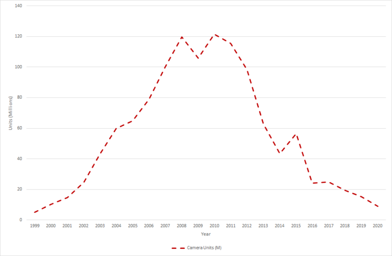 So where does that leave us? Probably back where we started in the 1980s! Cameras have always been an emergent, expensive and, as a result, high-end tech sector. The first (analog) consumer boom came in the 1980s because film cameras could be manufactured very cheaply, with the mass-market scale used to minimize the cost of film, development, and printing. The second (digital) boom of the 2000s took advantage of microelectronics, miniaturization, supply chain sourcing, and just-in-time manufacturing.