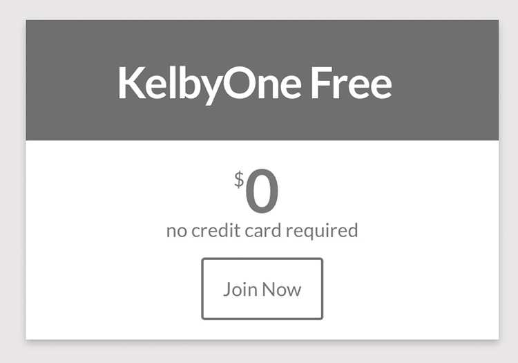 So, head over to KelbyOne.com; scroll down to the bottom of the page, and choose the FREE level of members and you’re “in.” Again, no credit card required, so jump on over there right now.