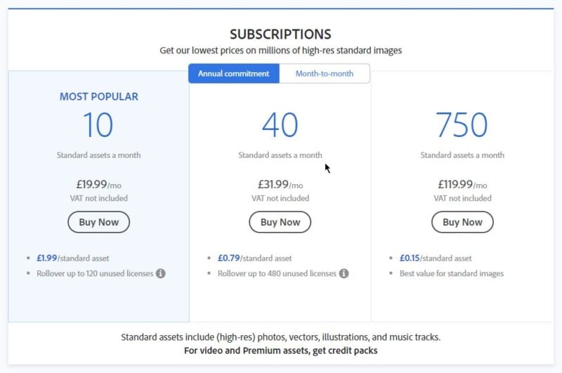 Adobe Stock offers subscription tiers for buyers