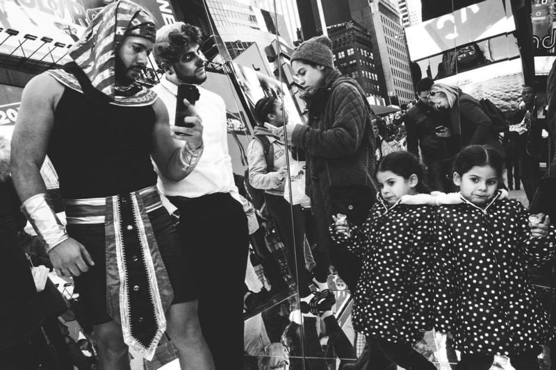 I was on one of my street walks in Times Square back in 2016 when I came by a mirror installation titled “The Beginning of the End.” The sculpture was comprised of three giant mirrors and was created by Cuban artist Rachel Valdés Camejo. The photo is actually a reflection of people standing next to me, and the girl in front of me is leaning against one of the mirror walls.