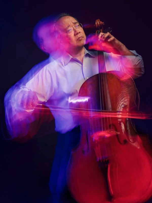I knew Yo-Yo would be moving around a bit, and since I needed his face to be sharp I used a Profoto strobe and 3’ Octa softbox with a grid to freeze some of that motion in his upper body. The grid was used to keep the light from spilling onto too much of his body and losing the color and motion.