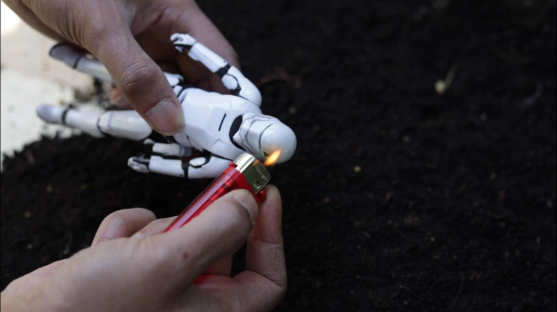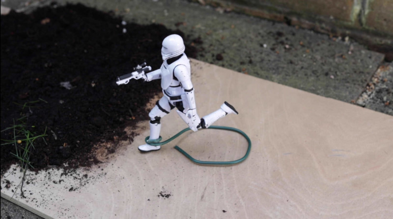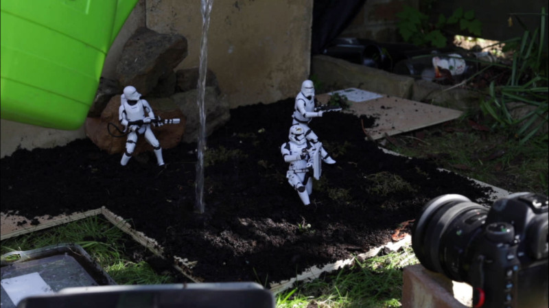 Firstly you need to decide on the toys you want to use. We used Star Wars figures because for the most part, there are no faces, which are harder to make look realistic with cheap figurines. Then decide on a suitable setting for them, we decided on a couple of different scenes;
