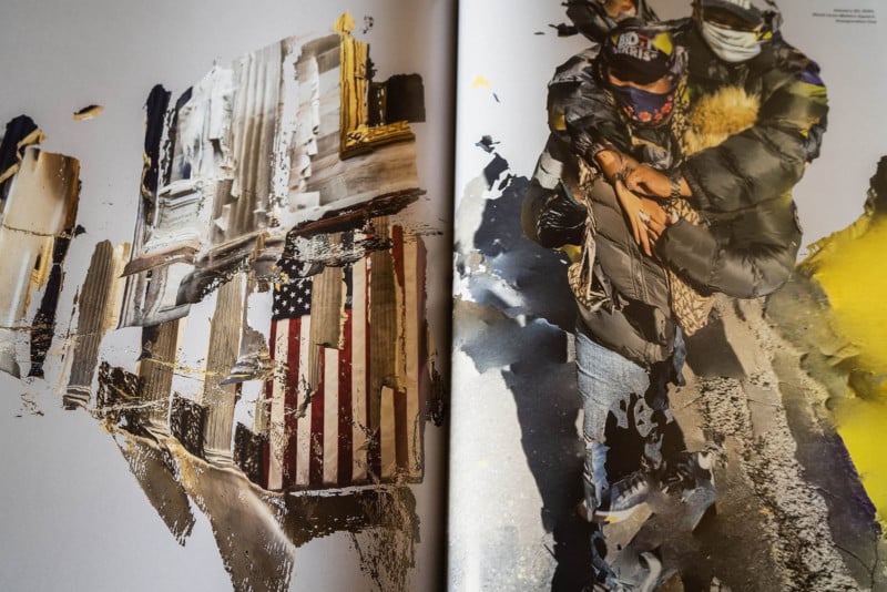 From a journalistic standpoint, January 6th can’t be ignored. Knowing that the magazine wouldn’t arrive until a good six months after the event we needed to have a unique approach. With the flaps, our cover is designed to be a mini photo essay in itself. Carol Guzy’s images worked brilliantly in this regard. They are very traditional, black and white, but also very insightful. We set the stage with her images. They document the event, but also give members a hint of what our publication is all about. Having done that, in the body of the magazine we ran twenty-two pages of Chris Morris’ images from the same event. They are the opposite of Carol’s work, as he captured them with lidar from his iPhone 12.