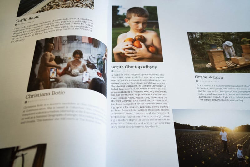 Pages from the first issue of The Curious Society publication. College students who’ve won the Gad Grant. All images Copyright 2021 Kenneth Jarecke