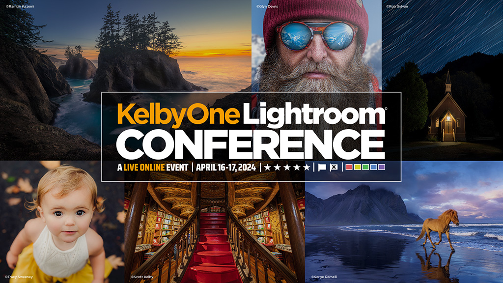 This live-streamed event is open to everyone—photographers from all over are already signing up (we sneaked the news on my weekly photography show, The Grid, yesterday)—so sign up early to get the best pricing. You can get all the conference details and register right here: The KelbyOne Lightroom Conference.