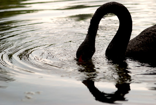 On first glance, the picture looks rather abstract but if you look closely, it is actually a black swan head diving into the pond looking for food.