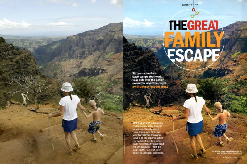In 2006 my wife and I decided we would take a vacation to Hawaii with our son. As I have always done, I brought my camera and photographed as we hiked the famed Waimea Canyon on Kauai. I continued to photograph the nearly two-week trip and when I returned home I put the images through my workflow and uploaded them to my archive. A little less than a year later National Geographic Adventure magazine emailed to ask about licensing the image. It turns out they were putting together a story on family vacations and thought the image would fit nicely as the opener for the story. I licensed the image for one-time use for $750.