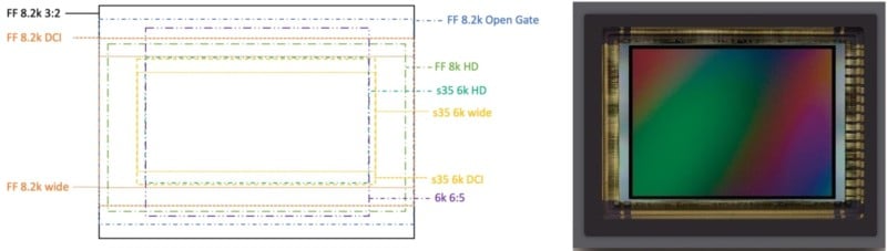 In full-frame, Gpixel says the sensor provides full 8K DCI widescreen (8,192 pixels), but also supports 2.4:1 8K wide or scope format, 8K open gate, and various other creative imaging formats. The native 8K resolution at its 3:2 aspect ratio allows filmmakers to shoot oversampled in a way that ideally fits a finished 6K or 4K film.