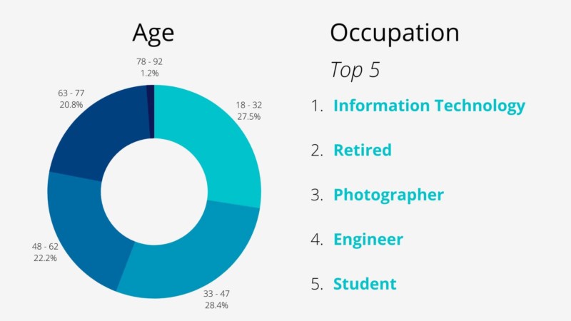 The age range was distributed quite evenly, suggesting an interest in analog photography across all generations. Importantly, over a quarter of the respondents were in the younger age bracket of 18 to 33.