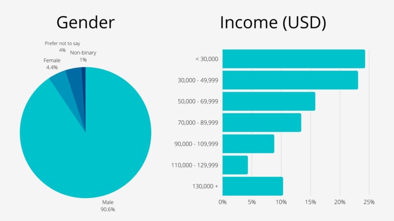 Of course, some of the data confirmed some pre-existing hypotheses such as the demand for new analog camera products. Other data was more surprising like the gender demographic which showed that nine in ten respondents in this survey were male, with only 4.4% of the sample being female.