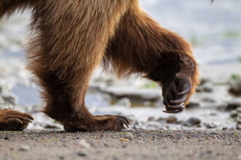 While the group photographs the middle-aged female, Russ and I choreograph the group in a tenuous dance of shoot-and-move in reaction to how the bear behaves. Our mission as photo guides and bear guards was two-fold: to keep the guests safe and make sure the bear isn’t stressed. For what seemed like an eternity (which in actuality was more like fifteen minutes), the bear fed and the guests took pictures and video. The moment is enthralling. In that tiny slice of time, I estimate that the seven photographers in tow take thousands of images of the single bear.