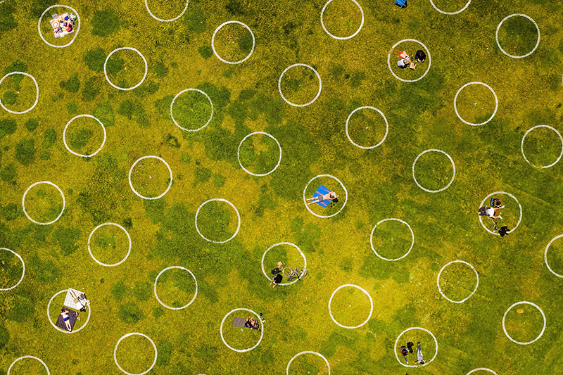 Circles designed to help prevent the spread of the coronavirus by encouraging social distancing line San Francisco’s Dolores Park, San Francisco, United States – 21 May 2020