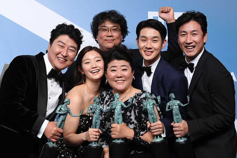 Kang-Ho Song, Bong Joon-Ho, Park So-dam, Jeong-eun Lee, Lee Sun-kyun and Choi Woo-shik – Outstanding Performance by a Cast in a Motion Picture – Parasite. 26th Annual Screen Actors Guild Awards, Press Room, Shrine Auditorium, Los Angeles, USA – 19 Jan 2020
