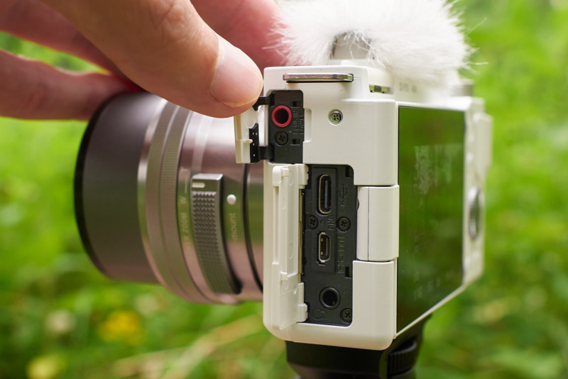 The ZV-E10 weighs 12.1 ounces (343 grams) with an NP-FW50 battery and UHS-I SD memory card installed. Add in the 16-50mm f/3.5-5.6 OSS kits lens, and we’re talking about a one pound (0.5 kilograms) setup good to go. For most people who record themselves with one arm extended out, the lightweight camera is a strong positive.